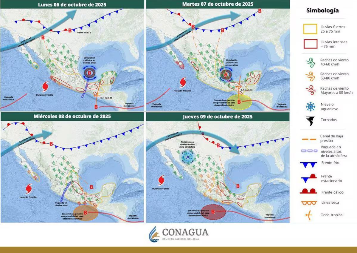 Aunque no representa peligro directo para Sonora, sus bandas nubosas podrÃan generar lluvias aisladas entre el 11 y 12 de octubre, especialmente en municipios del sur y zonas costeras.