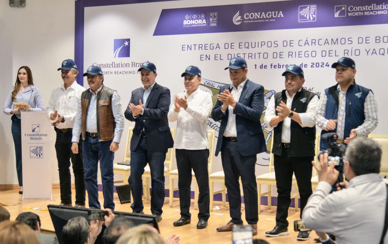 Sonora; a 02 de febrero del 2024.- En un esfuerzo conjunto entre el Gobierno del Estado de Sonora, Constellation Brands y el Distrito de Riego del RÃo Yaqui, se ha llevado a cabo la entrega de seis cÃrcamos de bombeo, destinados a 128 productores agrÃcolas del Valle del Yaqui. Esta iniciativa no solo promueve la eficiencia en el riego, sino que tambiÃn tiene un impacto significativo en el desarrollo econÃmico de la regiÃn.