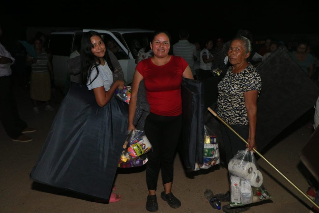 Colchonetas, despensas, kits de limpieza, cobijas, saquitos absorbentes y agua embotellada se entregaron en las comunidades de Los Buayums y Chirajobampo.