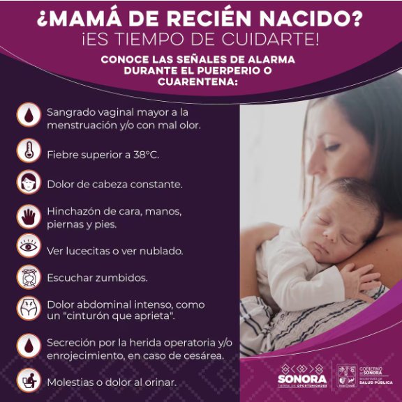La SecretarÃa de Salud de Sonora ha emitido importantes recomendaciones para las madres en el puerperio, tambiÃn conocido como la cuarentena, para asegurar una recuperaciÃn saludable despuÃs del parto. AdemÃs de seguir hÃbitos saludables, es fundamental estar atenta a ciertas seÃales de alarma que pueden indicar complicaciones graves.