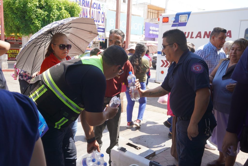 Navojoa, Sonora a 07 de agosto del 2025.- Para reducir riesgos por las altars temperaturas que azotan a Navojoa, la DirecciÃn de Salud Municipal, en coordinaciÃn con ProtecciÃn Civil y el Cuerpo de Bomberos, instalà un mÃdulo de hidrataciÃn donde se distribuyeron mÃs de 500 litros de agua purificada y 500 sobres de Vida Suero Oral.