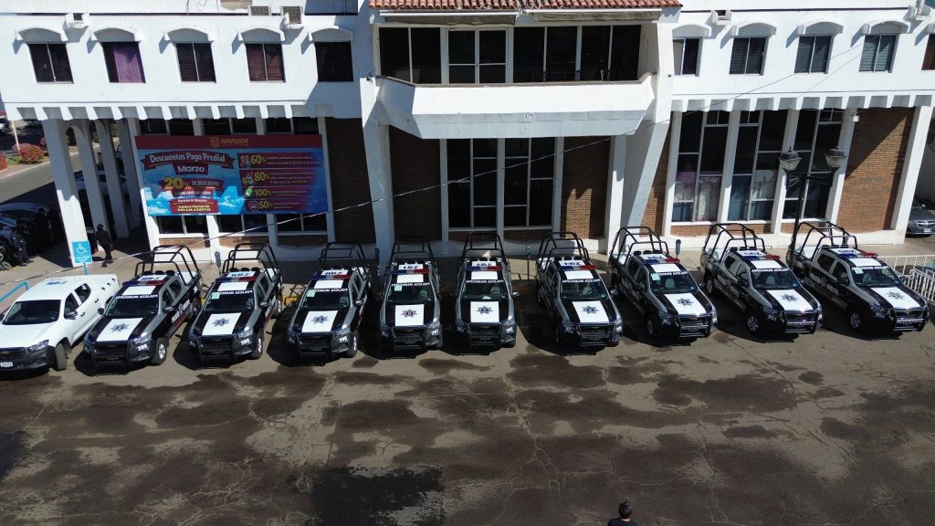 Navojoa, Sonora, 9 de marzo 2026.- Como parte de la estrategia para eficientar la vigilancia, acortando los tiempos de respuesta a los reportes ciudadanos sobre delitos, entre ellos la violencia intrafamiliar, el alcalde Jorge Alberto ElÃas Retes entregà este lunes 12 nuevas patrullas a la ComisarÃa de Seguridad PÃblica de Navojoa.