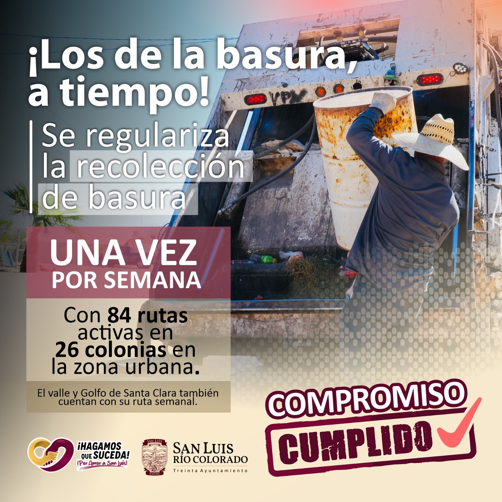 El servicio recorre las 26 colonias garantizando un entorno mÃs limpio y ordenado para los sanluisinos