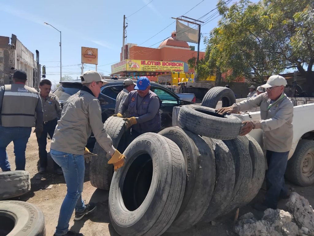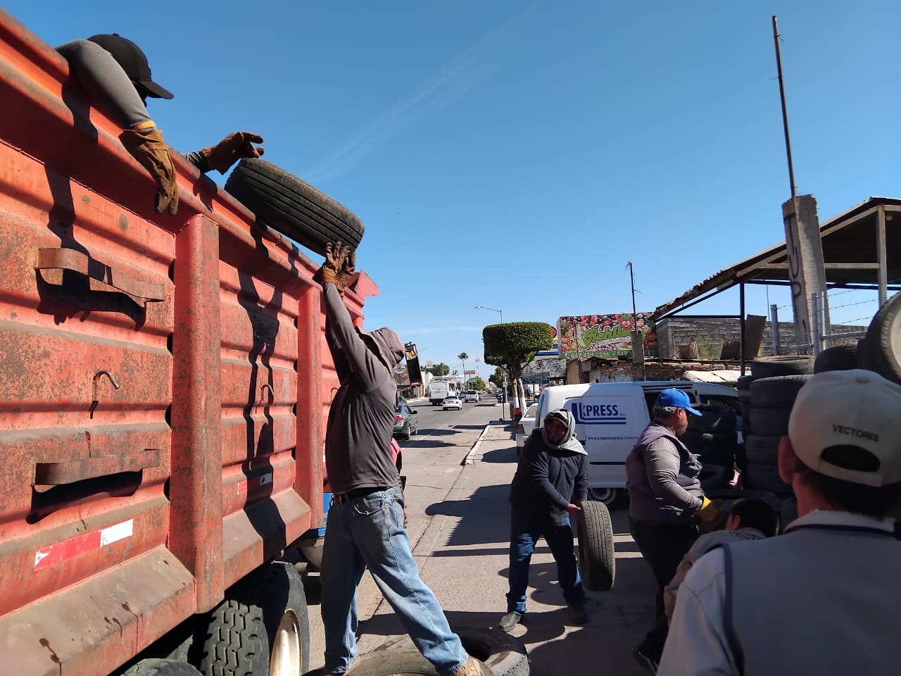 Navojoa, Sonora, 8 de mayo 2024.- Poco más de 6 toneladas de llantas en desuso fueron recolectadas en llanteras ubicadas al oriente de la ciudad, como parte de las acciones de combate contra el mosco transmisor del dengue por parte del ayuntamiento a través de la Dirección de Salud.