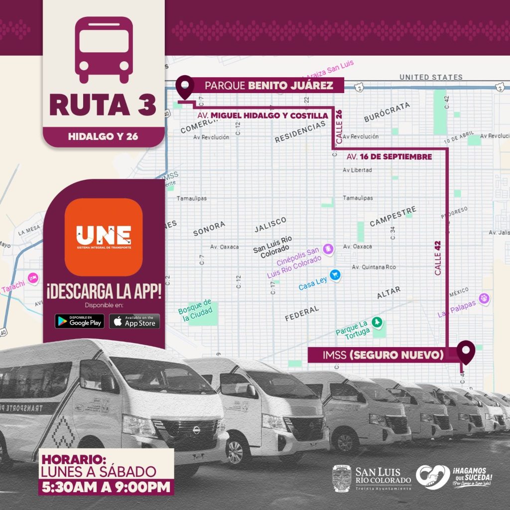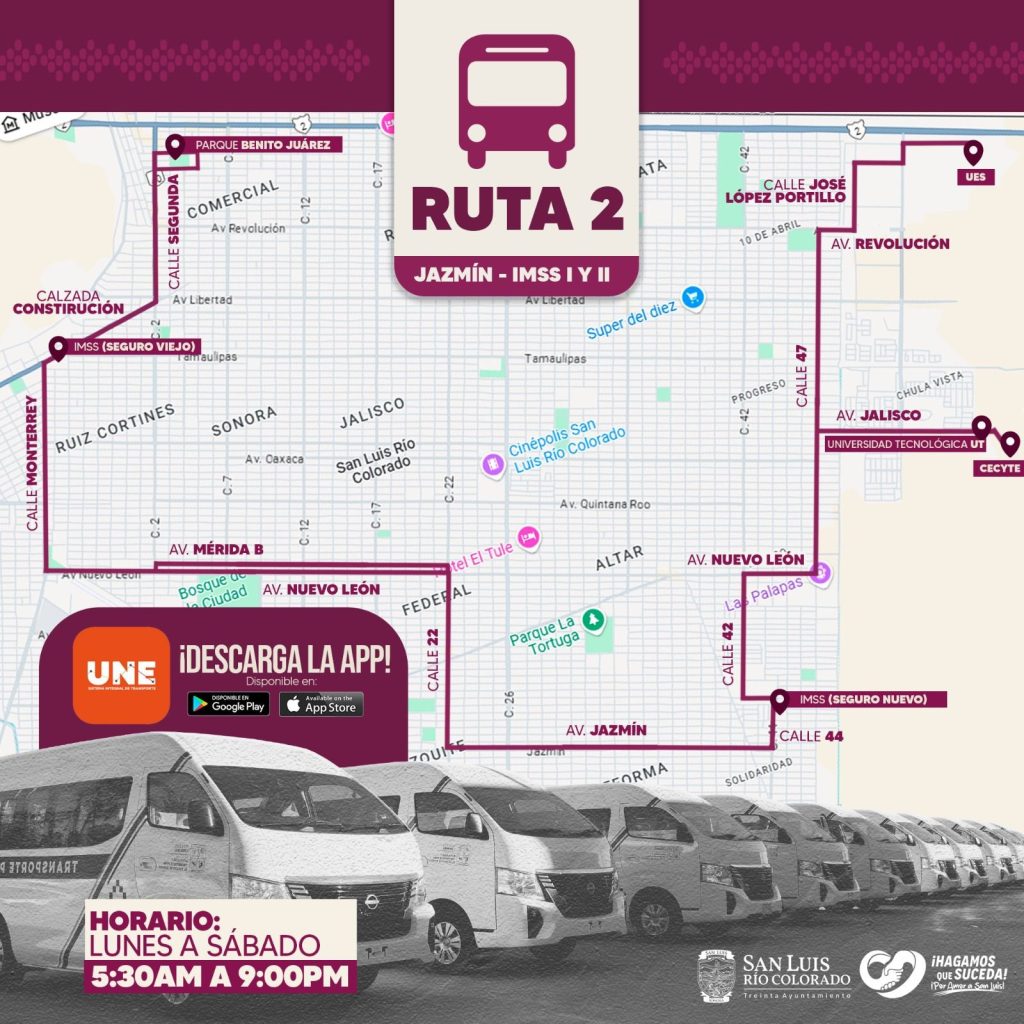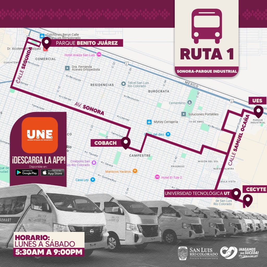 AdemÃs, se precisà que las Rutas 1 y 2 tendrÃn como destino universidades como la Universidad TecnolÃgica de San Luis RÃo Colorado (UT), la Universidad Estatal de Sonora (UES) y el Cecyte, permitiendo a los estudiantes una conexiÃn mÃs directa con sus centros educativos.