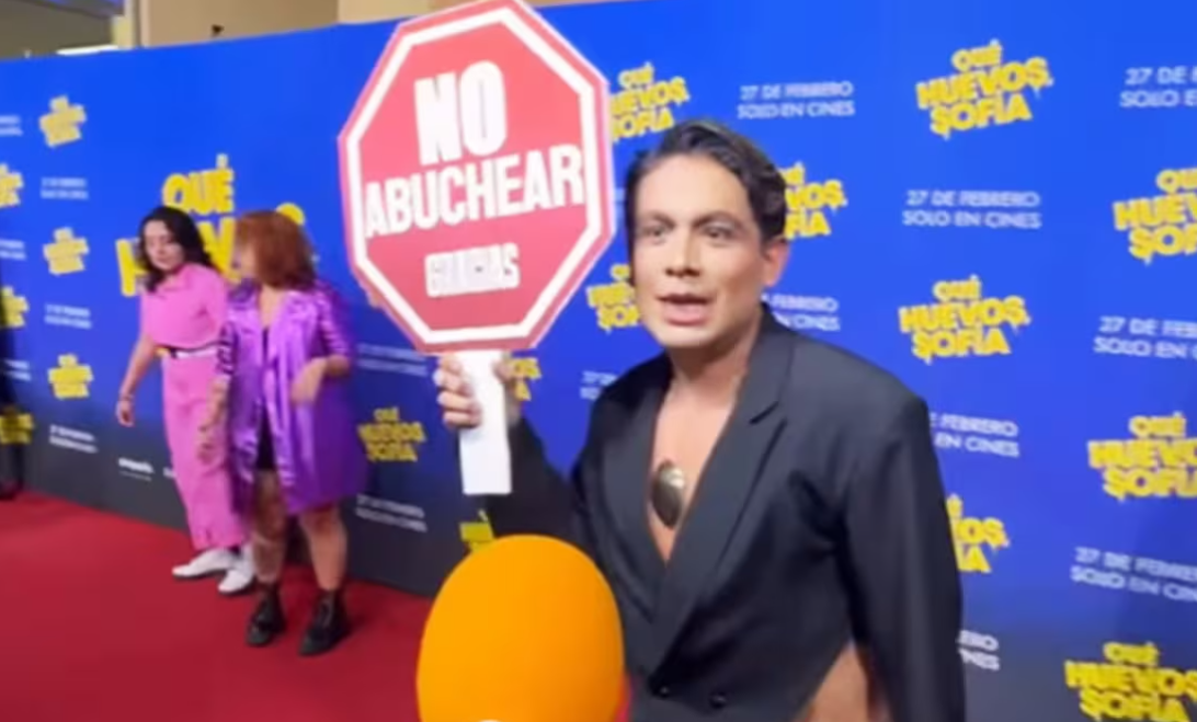 Ciudad de MÃxico, 25 de febrero de 2025.- Ricardo Peralta hizo su reapariciÃn pÃblica en el estreno de la pelÃcula ÂQuà huevos SofÃa! con un cartel de âNo abucheos por favorâ en mano, buscando evitar una nueva recepciÃn hostil como la que vivià en el estreno de Wicked, donde fue duramente criticado por el pÃblico tras su participaciÃn en La casa de los famosos MÃxico.