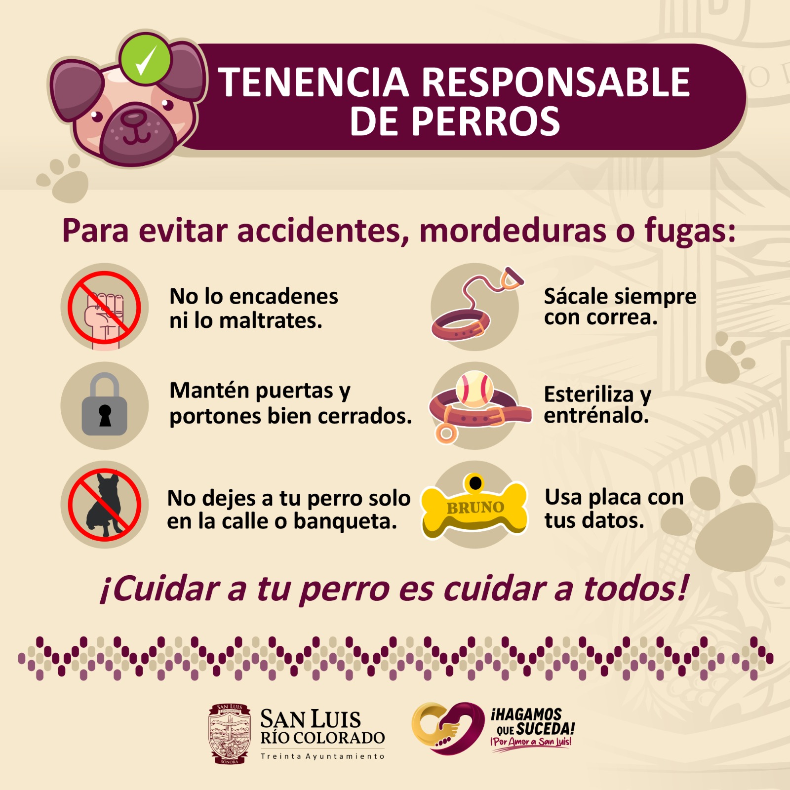 Este llamado cobra especial relevancia tras el incidente ocurrido el pasado fin de semana, cuando un ciudadano fue atacado por dos perros que escaparon de una casa contigua a un parque pÃblico, debido a que el patio tenÃa las puertas abiertas. Tras el reporte, los canes fueron capturados de inmediato y permanecen bajo resguardo en el Centro de Control Animal.