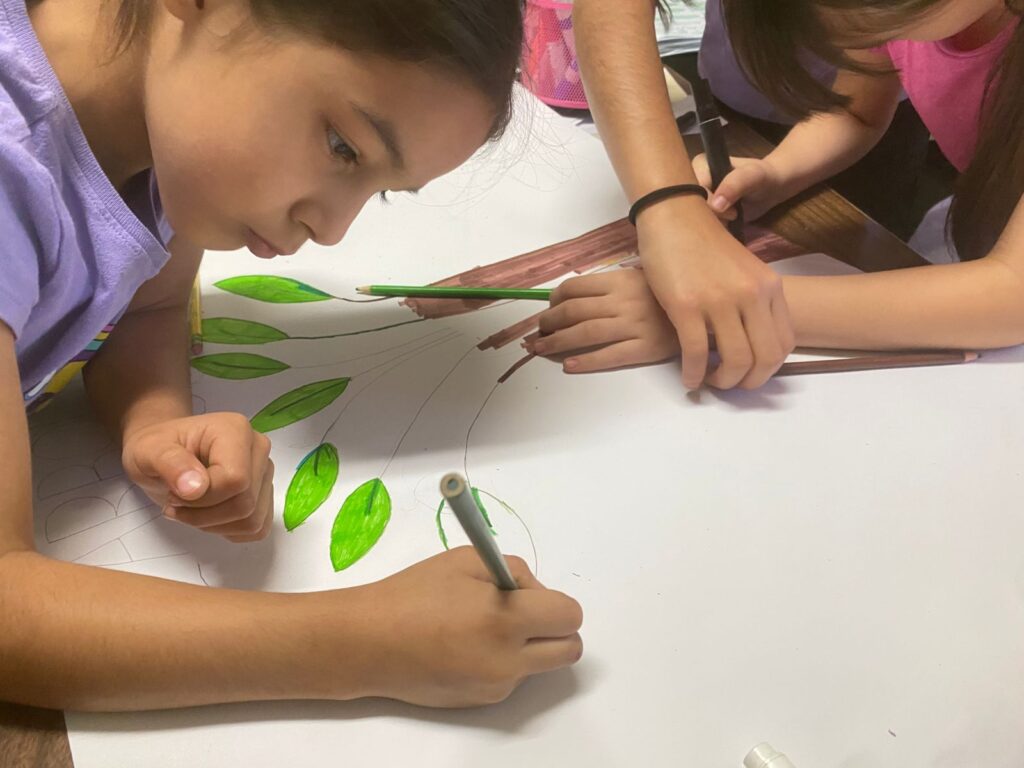 En el área formativa, se realizaron actividades de reforzamiento académico como la elaboración del “árbol de los valores”, así como manualidades con temática de naturaleza que fomentan la creatividad. En el ámbito deportivo, las y los participantes realizaron ejercicios de coordinación y fuerza mediante fútbol, tiros de canasta y el juego de quemados.