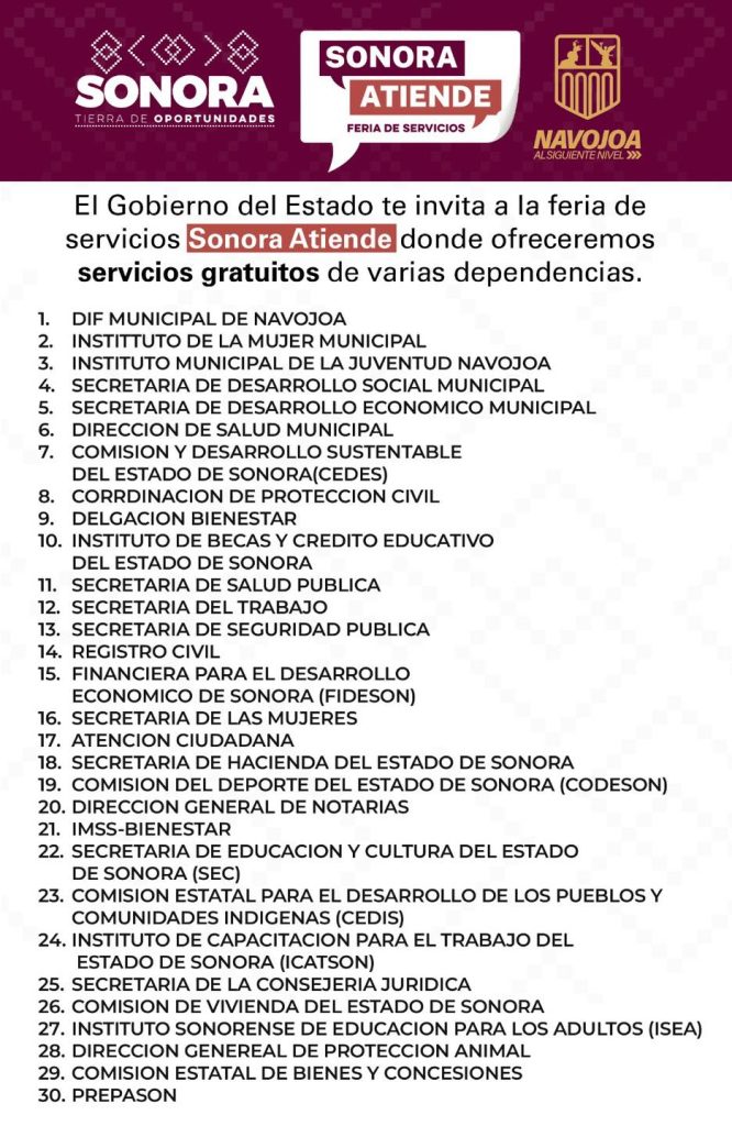 #SonoraAtiende #ServiciosGratis #Navojoa #ApoyosComunitarios #BienestarFamiliar #Sonora2024 #CalidadDeVida