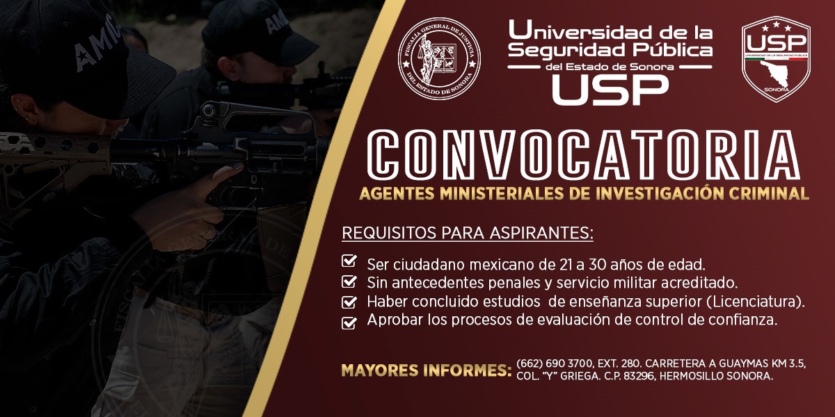 La convocatoria para aspirantes para convertirse en elementos de la Agencia Ministerial de InvestigaciÃn Criminal (AMIC), permanece abierta por parte de la FiscalÃa General de Justicia del Estado de Sonora (FGJES) y la Universidad de Seguridad PÃblica (USP).