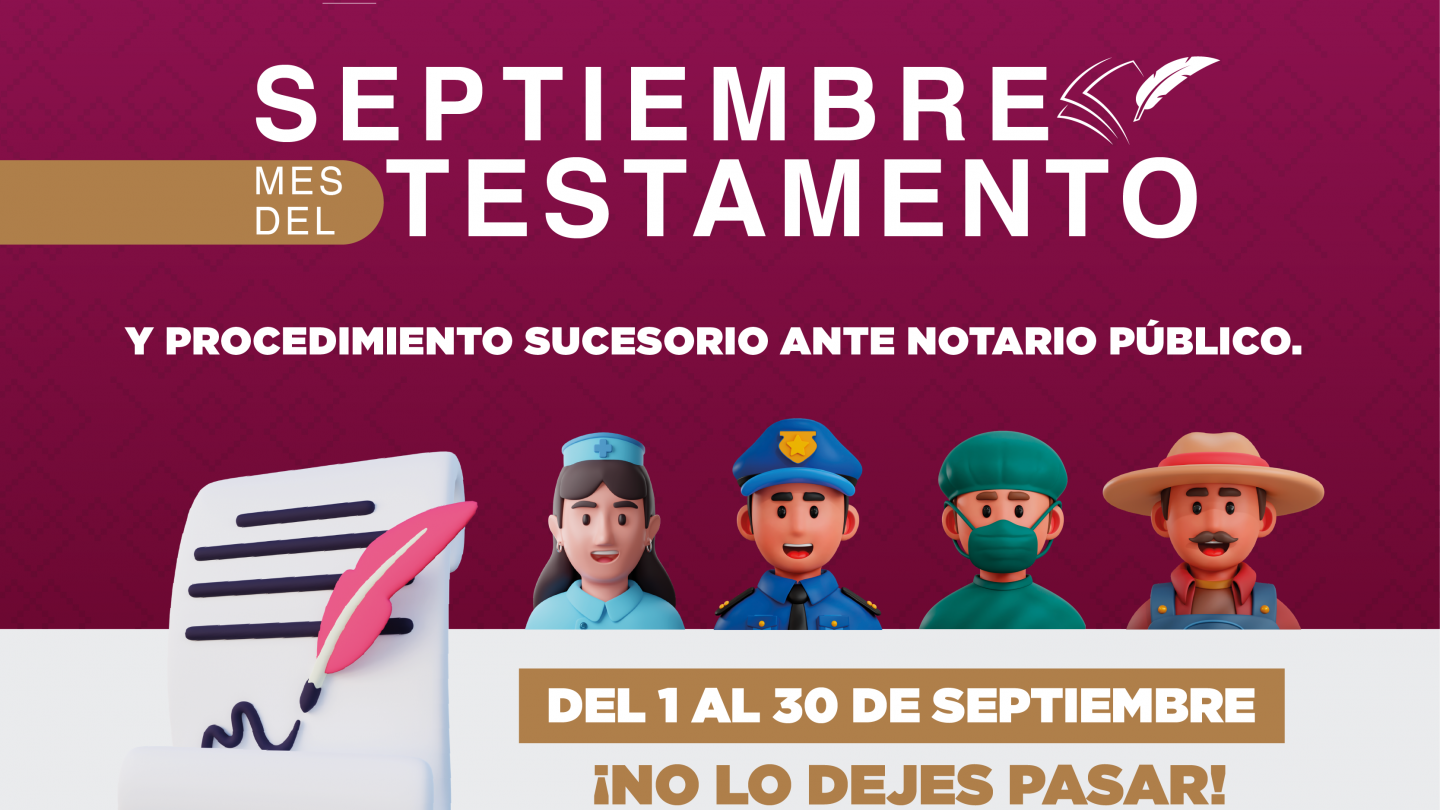 Hermosillo, Sonora | 1 de septiembre de 2025.– En el marco del programa estatal âSeptiembre, Mes del Testamento y Procedimiento Sucesorio ante Notario PÃblicoâ, el Gobierno de Sonora facilitarà servicios gratuitos a la ciudadanÃa con el objetivo de fomentar la cultura testamentaria y brindar certeza jurÃdica a las familias.