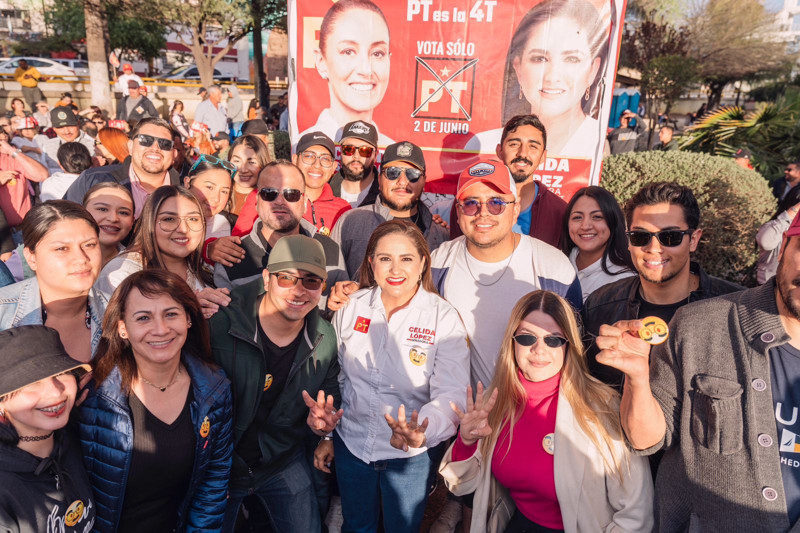 AcompaÃada por la candidata a la alcaldÃa de Nogales por el Partido del Trabajo (PT), LucÃa MÃndez, presidenta de Morena en esta frontera, David JimÃnez, presidente del Partido Encuentro Social (PES) municipal y JesÃs Pujol, aspirante a diputado por la CoaliciÃn Sigamos Haciendo Historia, Celida LÃpez explicà que deben obtener a tres senadores del movimiento en el estado.
