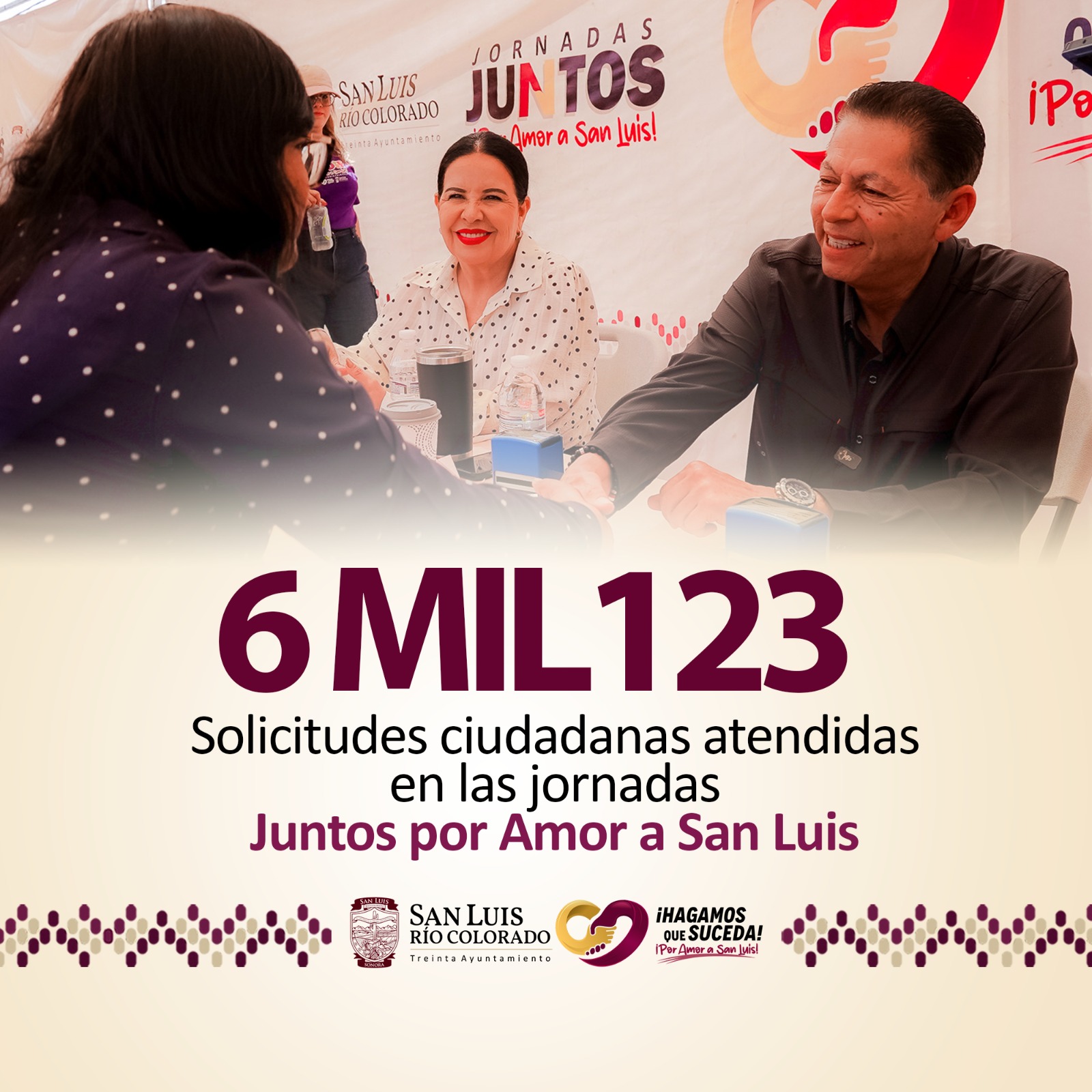 A la fecha, se han atendido 6 mil 123 solicitudes ciudadanas en distintos puntos de San Luis Río Colorado, su valle y el Golfo de Santa Clara, con servicios como asesoría legal y psicológica, consultas médicas y dentales, bolsa de trabajo, descuentos en el pago de agua, así como atención a reportes de alumbrado y espacios públicos.
