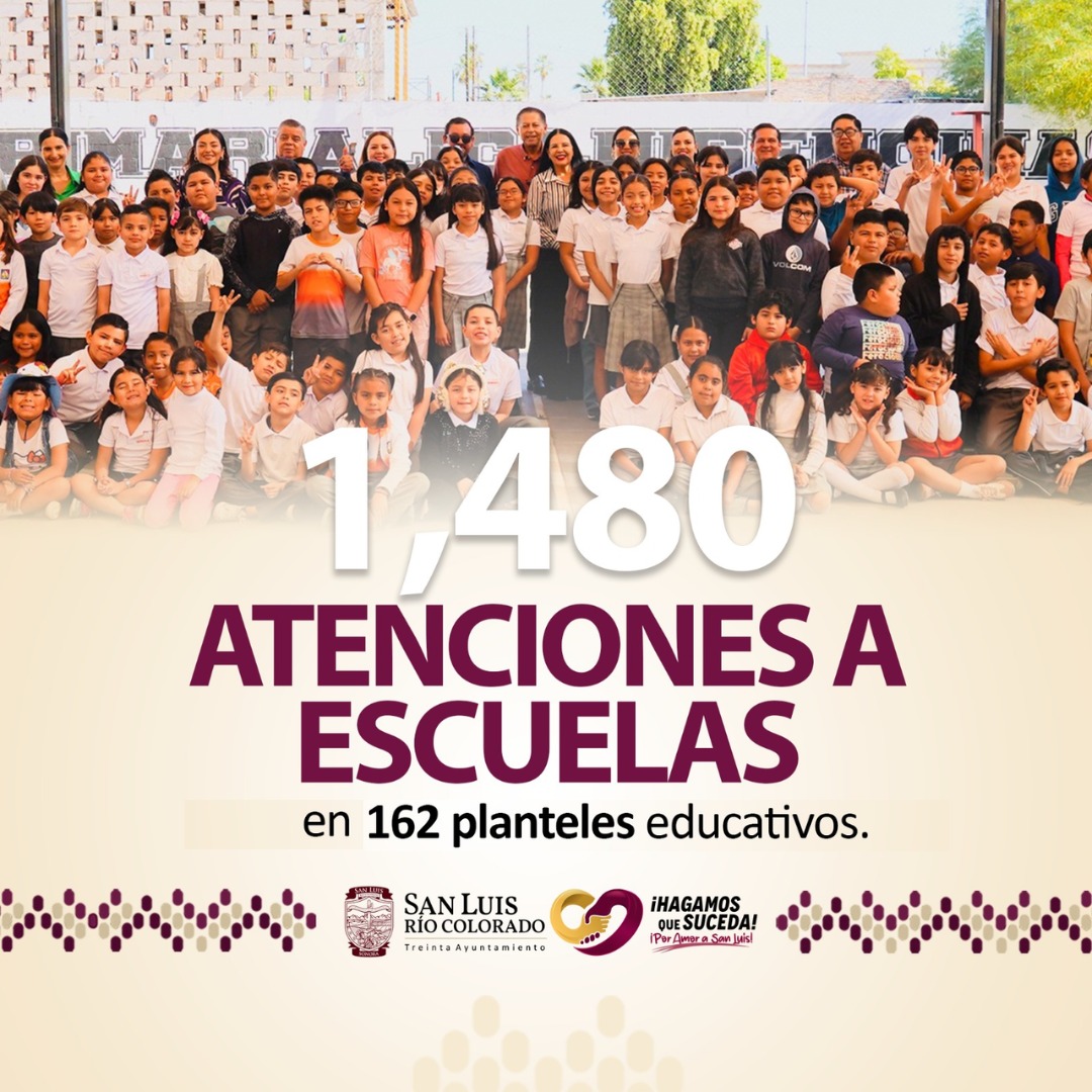 San Luis Río Colorado, Sonora (17 de abril de 2026).- Como resultado del trabajo permanente en favor de la comunidad estudiantil, el 30 Ayuntamiento, a través de la Dirección de Educación Municipal, ha brindado 1 mil 480 atenciones a 162 escuelas de la ciudad, el valle y el Golfo de Santa Clara, de enero de 2025 hasta el 31 marzo del presente año.
