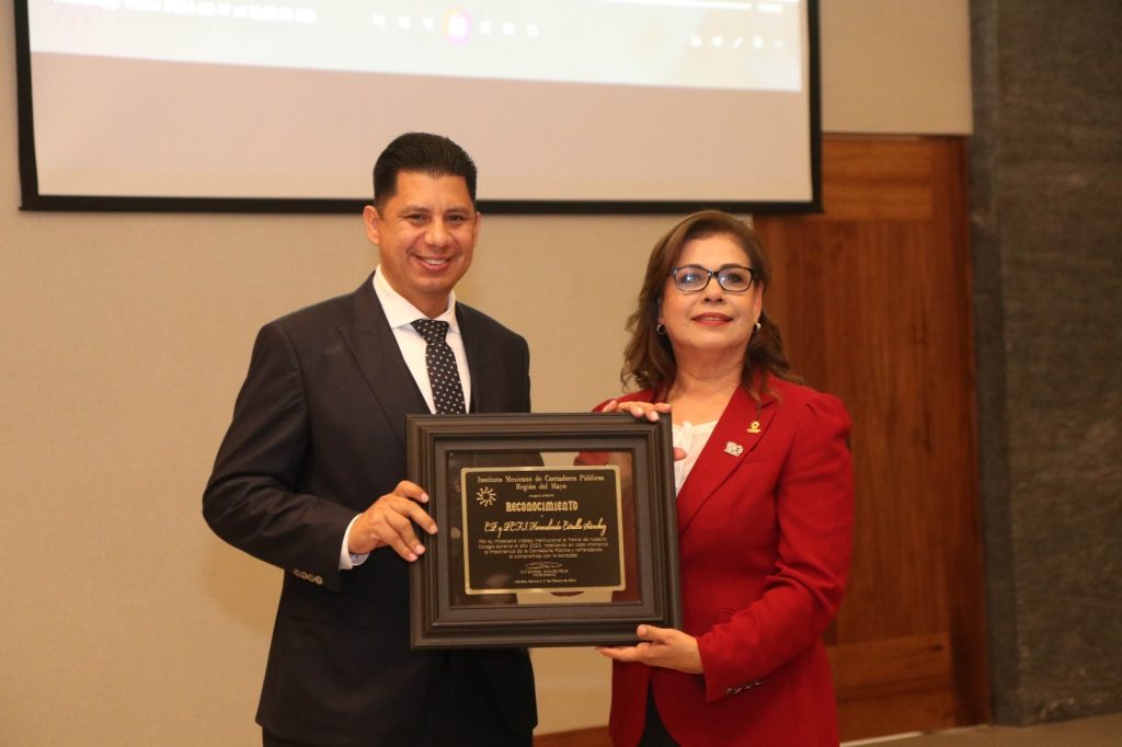 En la ceremonia, en la cual Hermelinda Estrella SÃnchez, terminà su perÃodo de un aÃo al frente del organismo de profesionistas, estuvo HÃctor Amaya Estrella, presidente del Instituto Mexicano de Contadores PÃblicos.