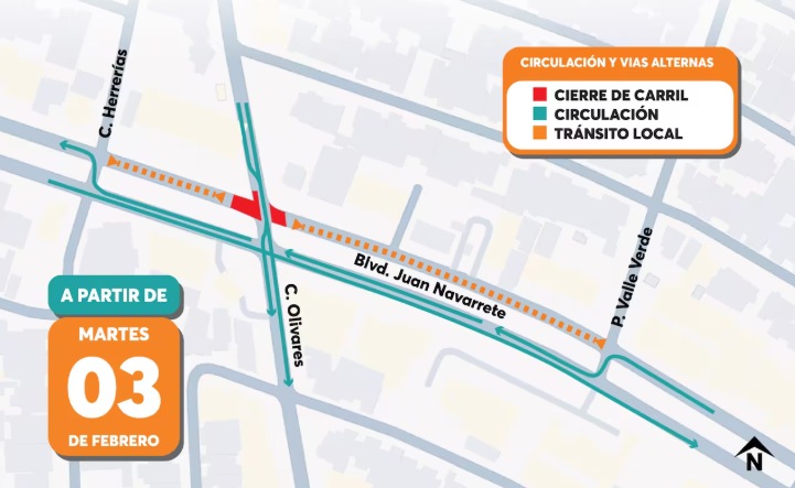 Si circulas por el poniente de la ciudad, prepÃrate. A partir de este martes 3 de febrero, el Ayuntamiento de Hermosillo arrancà la rehabilitaciÃn integral del crucero de los bulevares Navarrete y Olivares.
