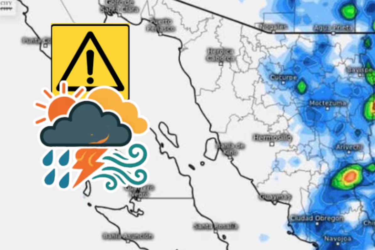 Hermosillo, Sonora.â La CoordinaciÃn Estatal de ProtecciÃn Civil de Sonora emitià una alerta meteorolÃgica ante un doble riesgo climÃtico: intensas tormentas elÃctricas en el oriente del estado y temperaturas superiores a los 45ÂC en valles y zonas urbanas. A esto se suma la vigilancia de una zona con 100% de probabilidad de convertirse en ciclÃn en el PacÃfico en las prÃximas 48 horas.