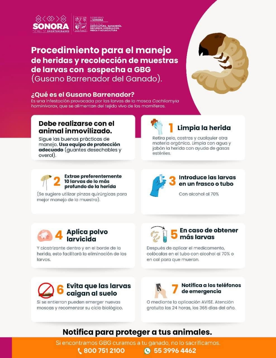 El Gobierno de Sonora realiza las gestiones necesarias junto al Gobierno de MÃxico para establecer un protocolo sanitario en la contenciÃn y erradicaciÃn del gusano barrenador del ganado, junto al Gobierno de los Estados Unidos, y asà poder reabrir la frontera que fue cerrada temporalmente a la exportaciÃn del ganado mexicano, informà Celida LÃpez CÃrdenas.