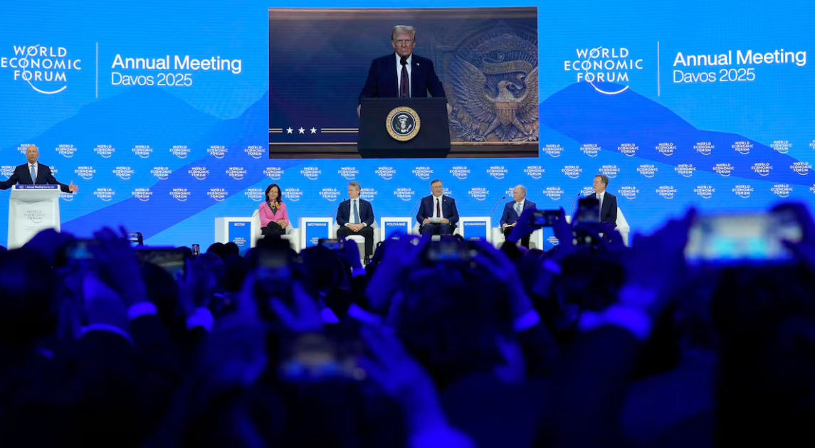 En su primera intervenciÃn internacional desde su reelecciÃn, Trump reiterà su postura proteccionista: âSi no fabricas tus productos en Estados Unidos, tendrÃs arancelesâ, afirmÃ, al tiempo que prometià beneficios fiscales para quienes inviertan y manufacturen en territorio estadounidense.