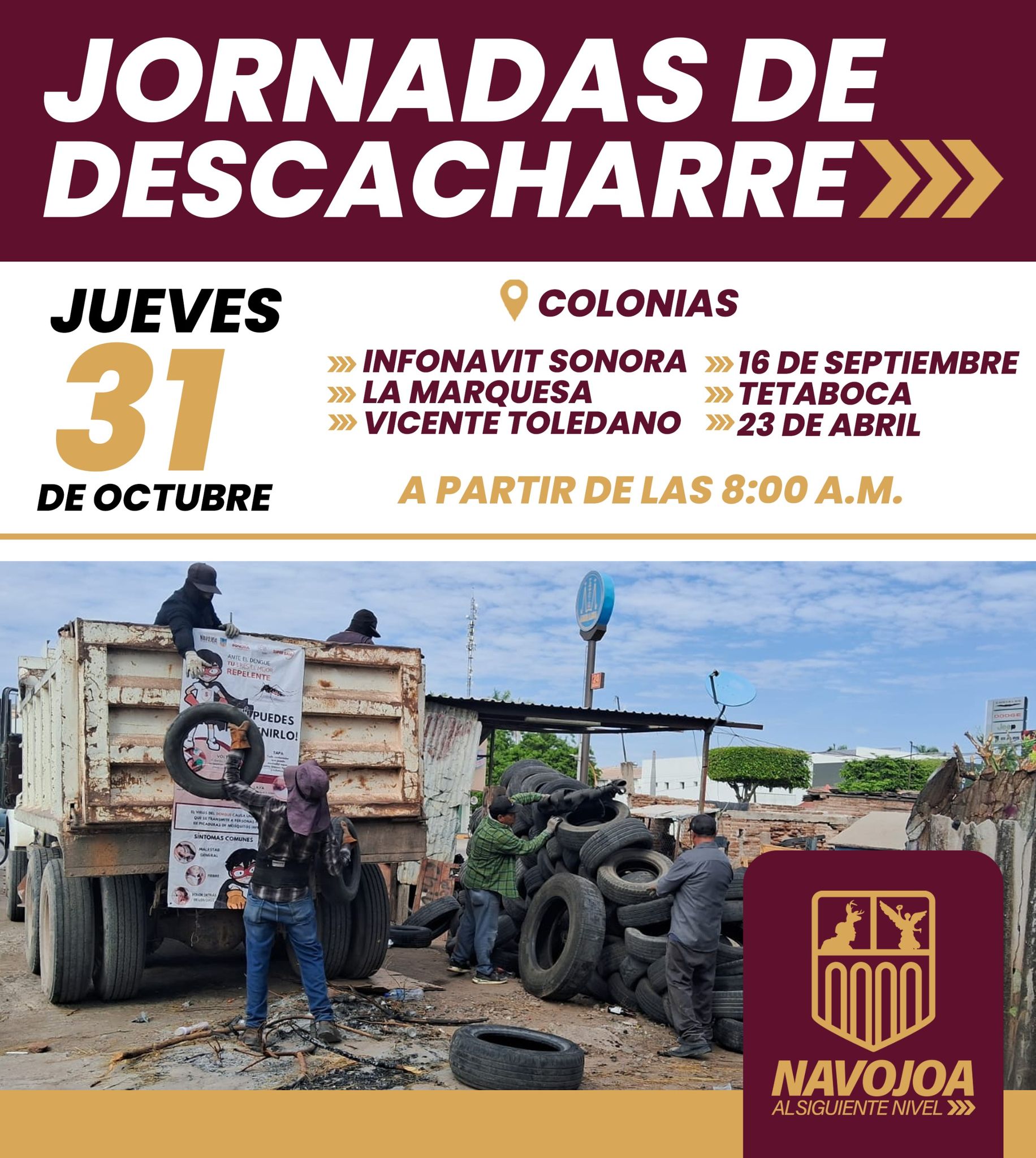 Este jueves 31 de octubre, a partir de las 8:00 A.M., estarà el programa de descacharre, diseÃado para prevenir la proliferaciÃn del mosco del dengue. Esta es una excelente oportunidad para contribuir a la limpieza y el bienestar de la ciudad.