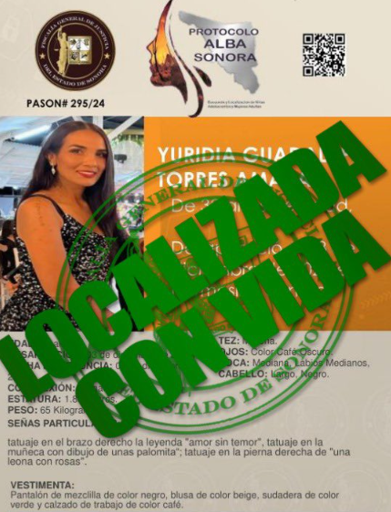 SegÃn las autoridades, Yuridia Guadalupe decidià salir de su hogar por invitaciÃn de un amigo para viajar a Guaymas, Sonora. Durante su estancia en este destino de playa, la mujer apagà su telÃfono mÃvil para evitar el contacto con sus familiares, lo que llevà a la preocupaciÃn y a la activaciÃn del Protocolo Alba Sonora.